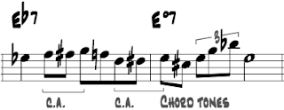 So why is this solo so memorable? I hate to keep going back to the same well but it turns out that well has a lot of water in it—this solo makes brilliant use of chord tones (for a video and post about chord tone soloing, click that link) as well as Blues language and chromatic approach notes. It's a master class in how to navigate these kind of advanced, Blues-based tunes.